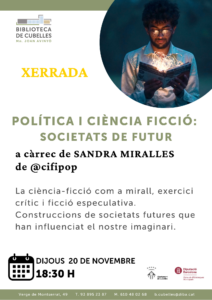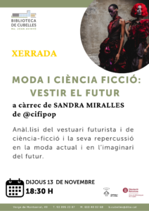 Els dijous 13 i 20 de novembre a les 18:30 , CI FI POP aterra a la BIBLIOTECA Mn Joan Avinyó de CUBELLES amb dues xerrades de ciència-ficció : MODA I POLÍTICA. Dues ocasions per a descobrir mirades cap al futur des de diferents punts de vista. La moda ens defineix visualment i la política, socialment. Intentarem esbrinar com la ciència-ficció influencia aquests mons.